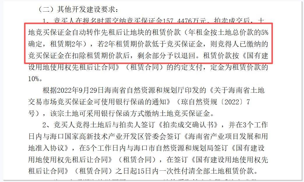 说白了,企业拍地成功后,首付只要土地总价的10%!剩余的土地款,可以等到2年租赁期满后再付清。