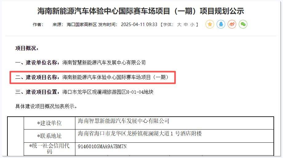 再顺藤摸瓜,楼Sir惊讶地发现,这正是规划已久的“海南新能源汽车体验中心国际赛车场项目(一期)”的核心部分!